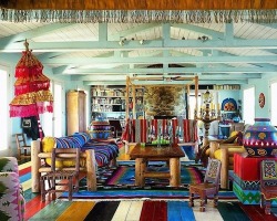 Что касается элементов декора – их должно быть как можно больше! Картины! Скульптуры! Статуэтки и тотемы! И конечно же только ярких цветов!