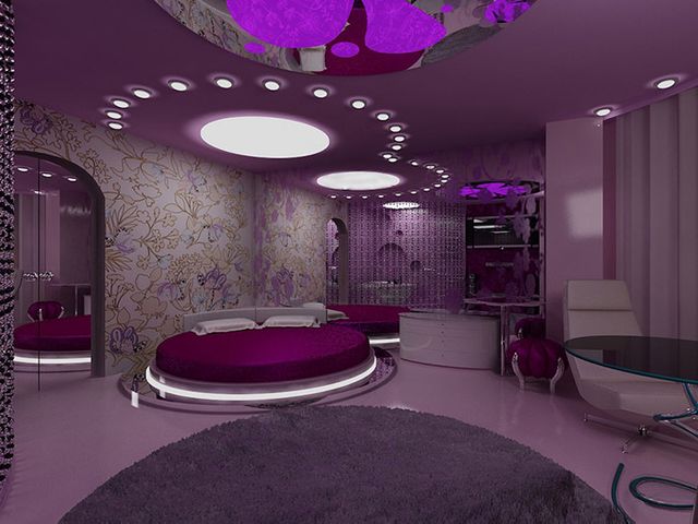 Теплый и спокойный цвет сливы в сочетании с классическими цветовыми решениями создадут расслабляющую обстановку в спальне или гостиной. Оттенки синего благоприятно влияют на настроение и снимают стрессовое состояние.