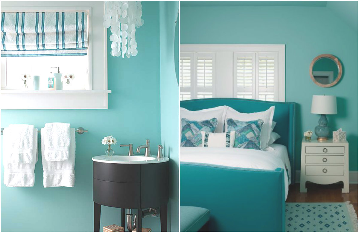 Это решение придется по нраву любителям нестандартных подходов к ремонту. Цвет морской волны позволит визуально увеличить пространство в помещении и наполнит его теплым светом.