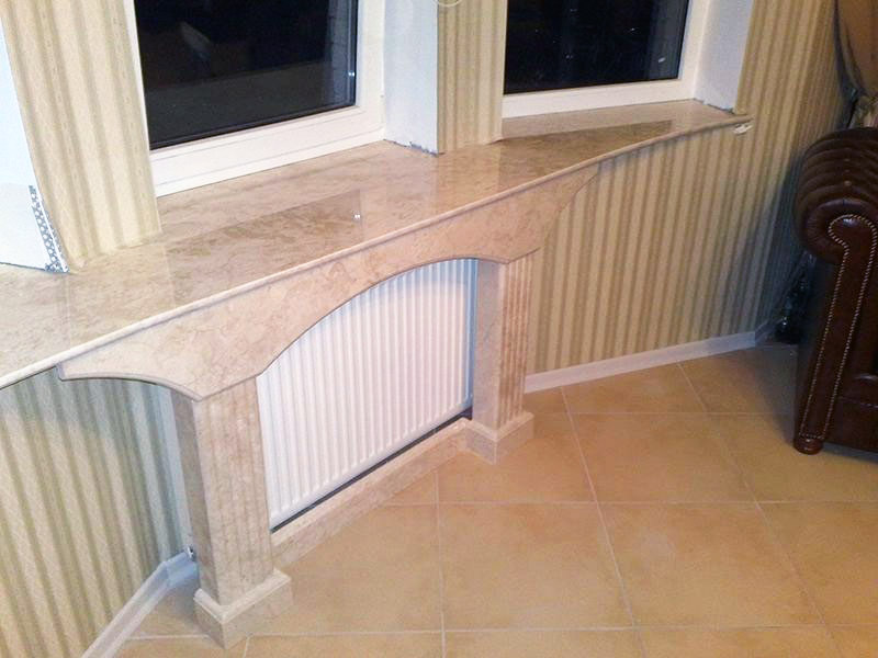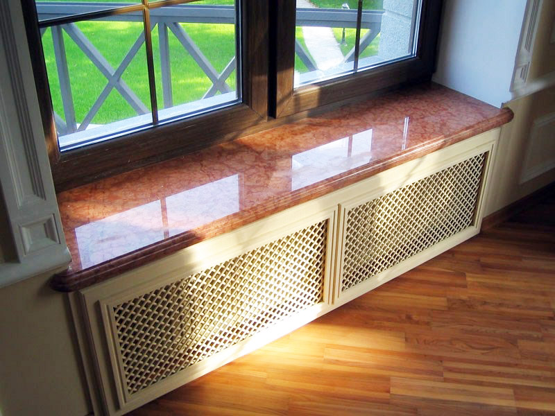 Другим значительным качеством мрамора является стойкость к резкому изменению температуры. Мрамор не лишается своих свойств летом и зимой. Монтаж подоконника возле радиатора не оказывает практически никакого влияния на его качества. Нагревается равномерно и не позволяет окнам запотеть.