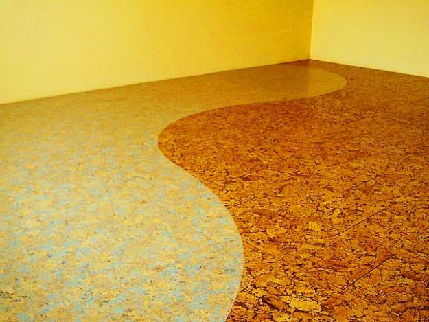 Отделка пола пробковым покрытием - натуральный напольный материал, представляющий собой продукт переработки древесины пробкового дерева. Высоко ценится за свои выдающиеся теплоизоляционные свойства, обусловленные пористой структурой. Продается в виде плит и рулонов, быстро укладывается, создает в помещении обстановку домашнего уюта. Не боится воздействия насекомых и грызунов, поэтому, в отличие от других деревянных покрытий, может применяться в загородной местности. Пробковый пол не требователен к уходу, без проблем чистится любым моющим средством. В то же время имеет и недостатки - набухает во влажных помещениях, мнется ножками тяжелой мебели, да и стоит достаточно дорого.