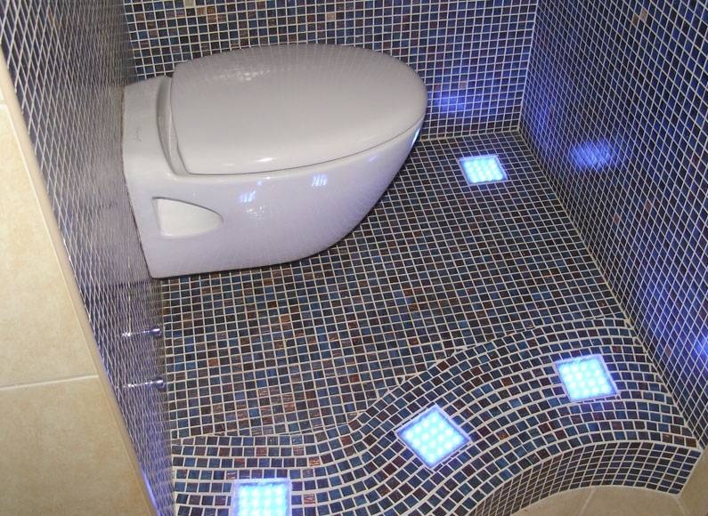 Такое оригинальное решение зрительно освобождает пространство за унитазом и делает туалет воспринимаемо более просторным.