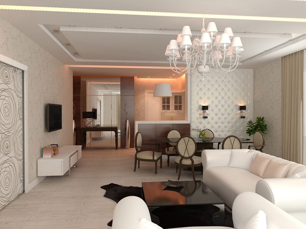 Тенденции современного дизайна интерьеров подразумевают создание максимально свободных пространств. Потому, планируя ремонтные работы зала в квартире, стоит это учитывать. Уместным будет совершить разделение всего пространства комнаты на отдельные зоны с целью обеспечения одновременного комфортного пребывания нескольких людей.