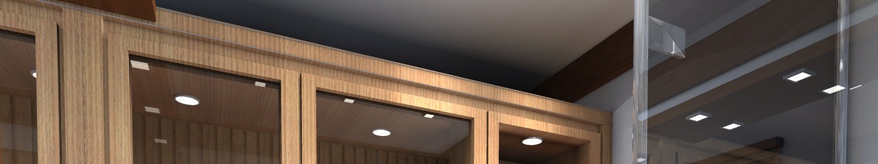 Кабина сауны устанавливается на пол деревянный или отделанный керамической плиткой, но предварительно обработанный специальными антисептическими средствами, предупреждающими гниение. Стены её состоят из двухслойных тепло- и пароизолированных утеплённых панелей (причём толщина утеплителя - не более, чем 50 мм), потолок по своему устройству идентичен стенам.